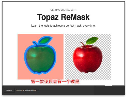 1.在安装完成Topaz Mask的所有手续之后,打开软件时会跳出一个抠图步骤动画,简单观看即可。